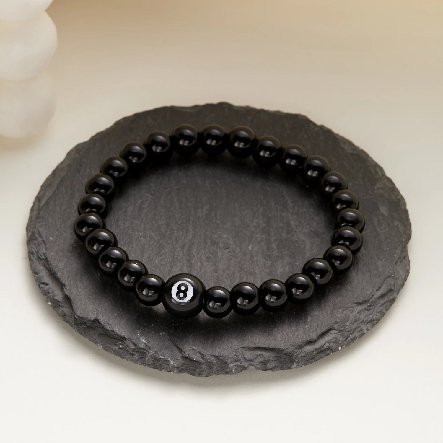Billiard 8-Ball Beaded Bracelet in Black for Men