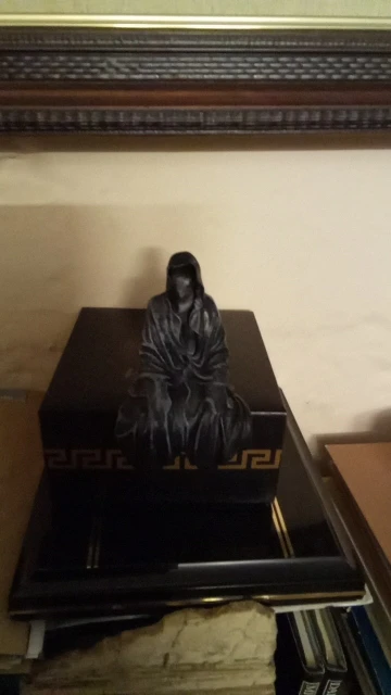 The figurine is very curious, mysterious and because of its size you can put it anywhere. Thank you.